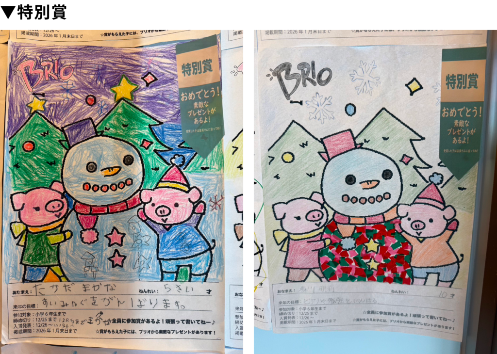 先日開催いたしました「ブリオの冬休みぬりえ大会」におきましては